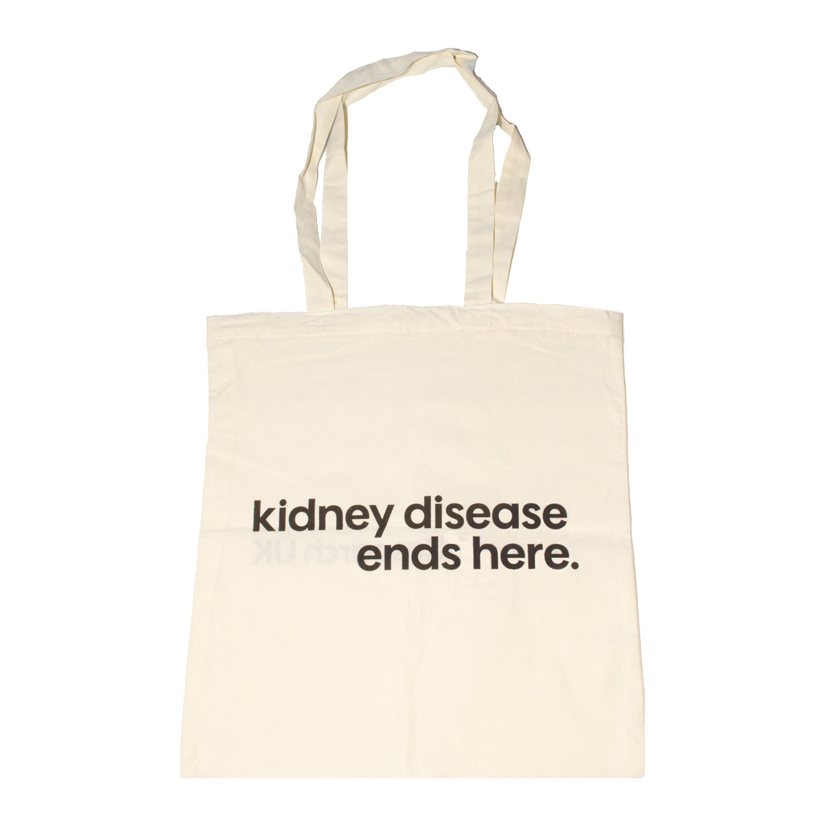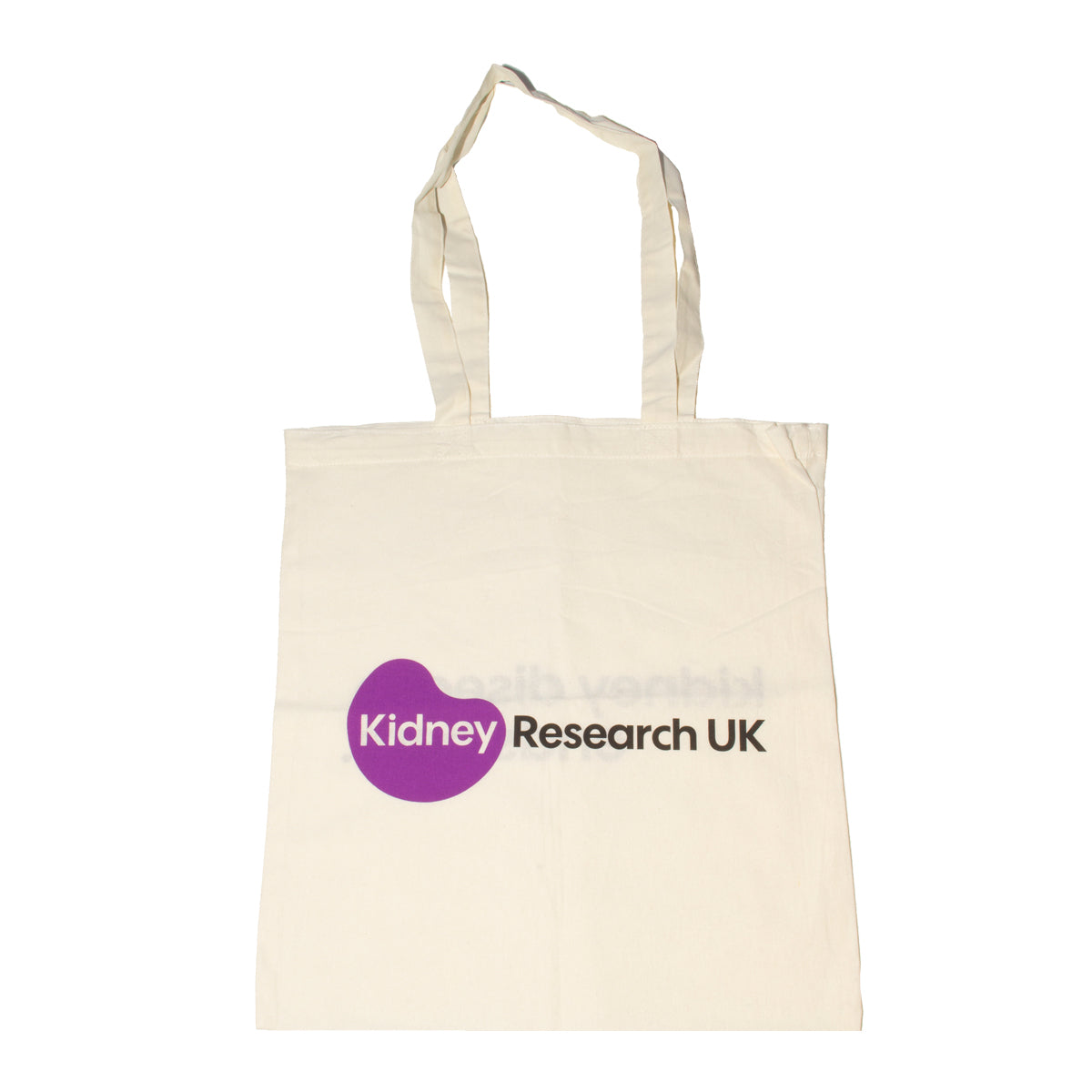White Tote Bag with Kidney Research UK logo on front of bag.